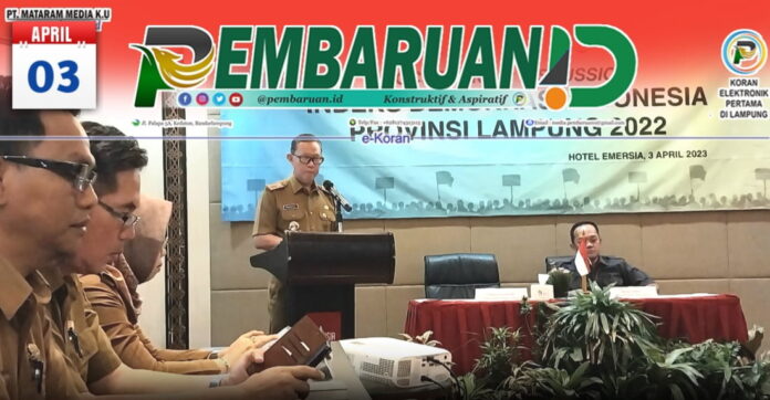 kspsi-aceh.or.id/ – Gubernur Lampung yang diwakili Sekretaris Daerah Provinsi Lampung Fahrizal Darminto membuka acara Forum Group Discussion Indeks Demokrasi Indonesia (IDI) Lampung, di Hotel Emersia, Senin (03/04/2023).