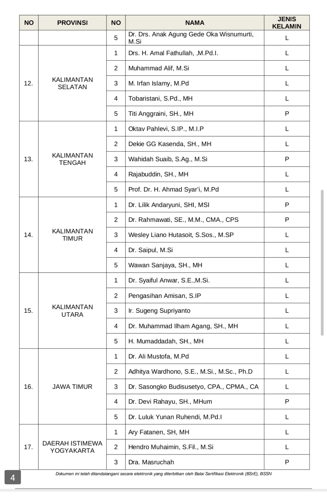 Dalam Pengumuman Nomor 220/KP.01.00/K1/03/2023 tentang Pembentukan Tim Seleksi Calon Anggota Badan Pengawas Pemilu Provinsi di 29 Provinsi periode 2023-2028 itu, terdapat lima nama Timsel Bawaslu Lampung, yakni: